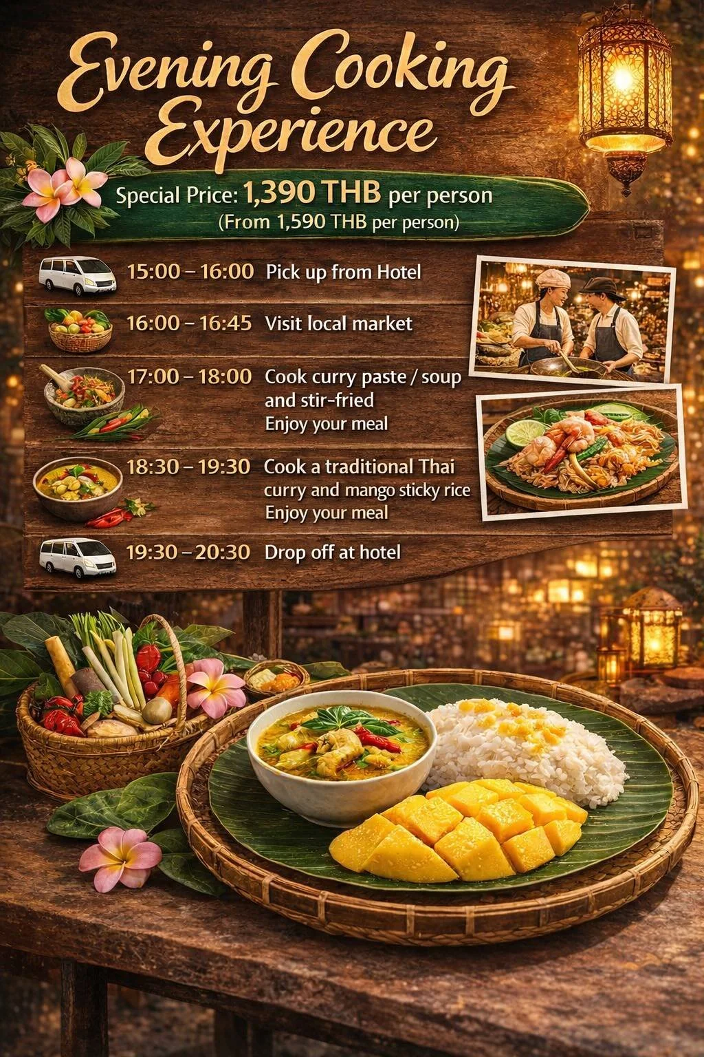 19:30 – 20:00 Make Mango Sticky Rice or Egg Custard Pumpkin Enjoy your dessert